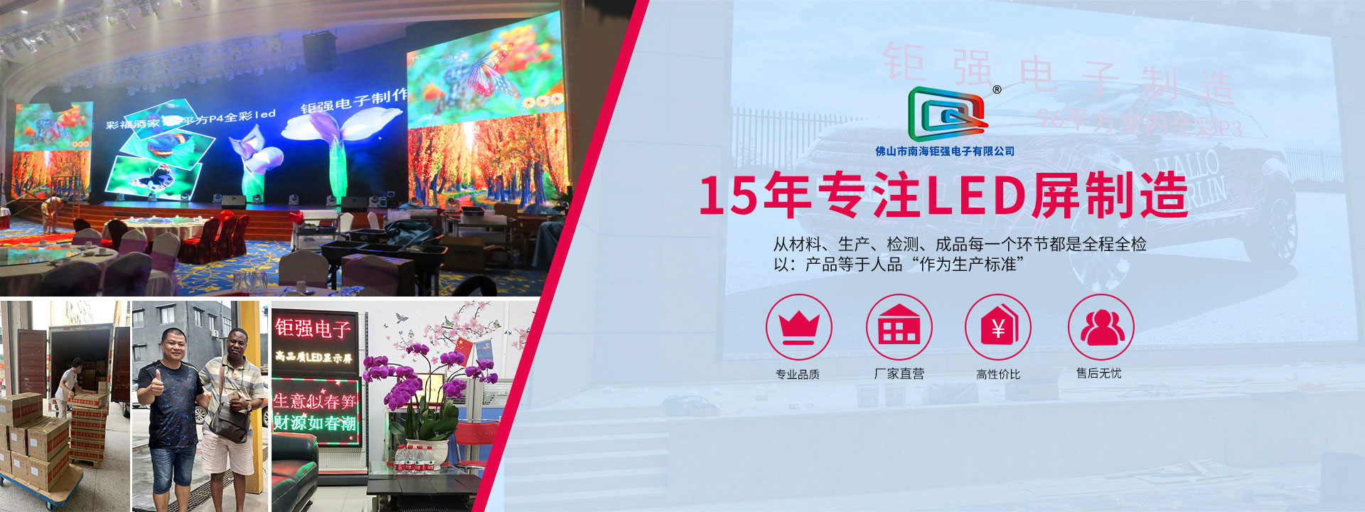佛山市南海鉅強(qiáng)電子有限公司是專業(yè)致力于LED顯示屏的研究、生產(chǎn)、銷售、工程服務(wù)的企業(yè)。主營LED顯示產(chǎn)品:室內(nèi)小間距LED顯示屏、室內(nèi)全彩LED顯示屏、戶外全彩LED顯示屏、LED舞臺租賃屏、LED異形屏、排隊叫號屏、車間工業(yè)看板、并批發(fā)多種型號LED邊框鋁材及相關(guān)配件...